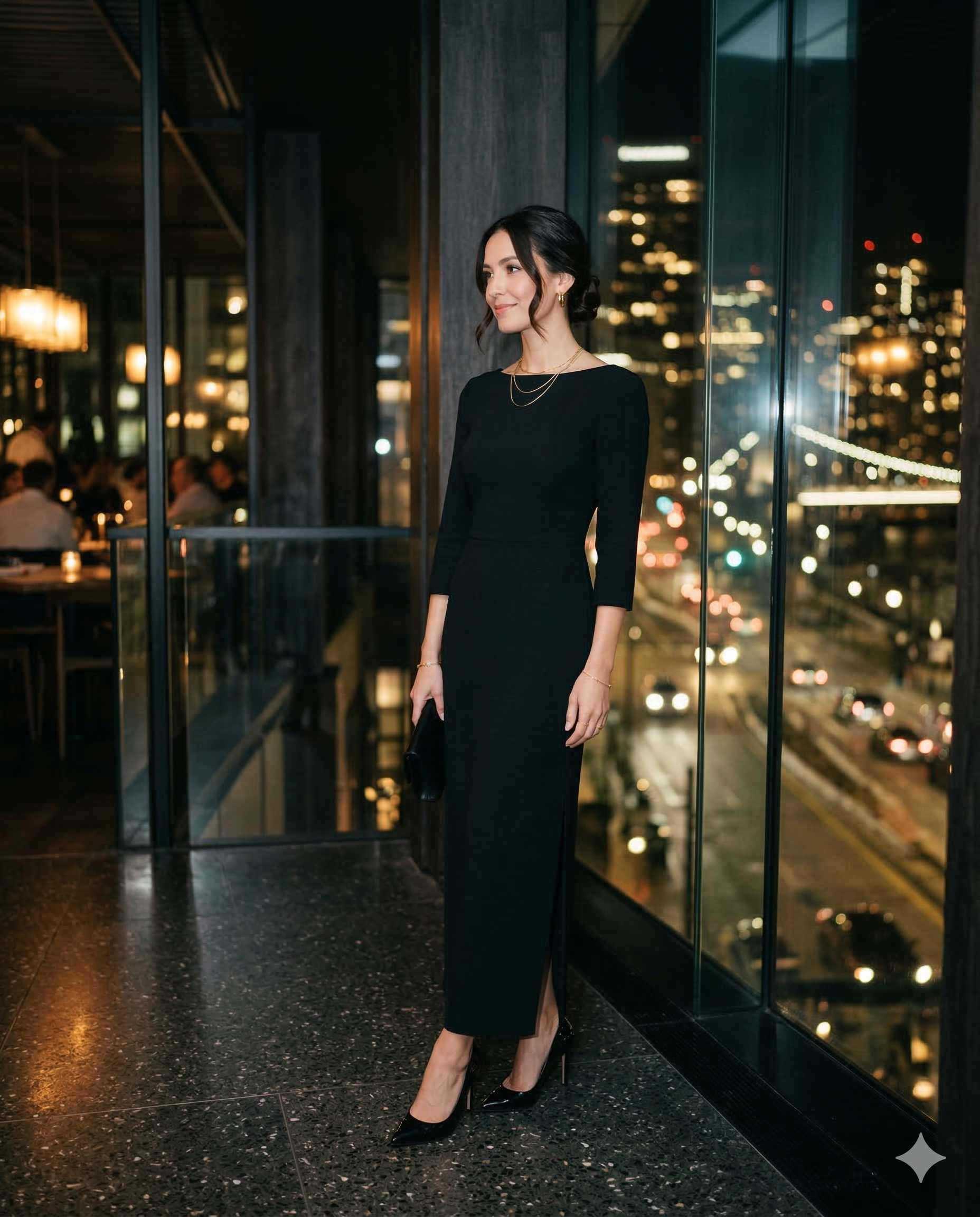 El negro es el aliado perfecto para la noche. Un vestido negro con un detalle clave —encaje, bordado, transparencia o un buen corte— es todo lo que necesitás para un look de noche impecable sin riesgo de exceso.